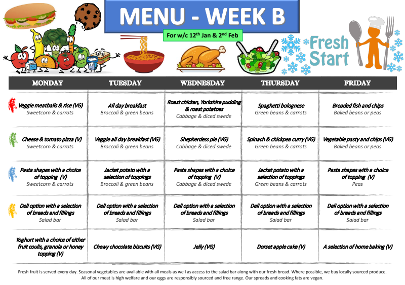 Our school meals are provided by Fresh Start catering and are cooked on site daily.